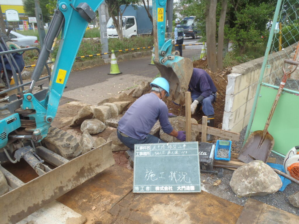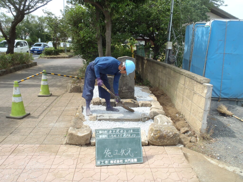 今回の施工紹介は【三芳町】での【庚申塔の移設工事】です。土地区画整理事業に関連し、江戸時代からの歴史的建造物である庚申塔の移設を行いました。