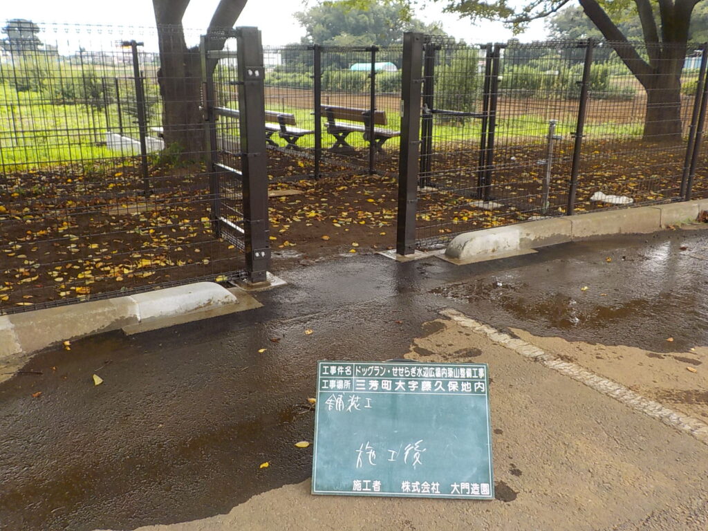 三芳役場庁舎東側にドッグランが整備されることになり、三芳町より受注して施工を行いました。