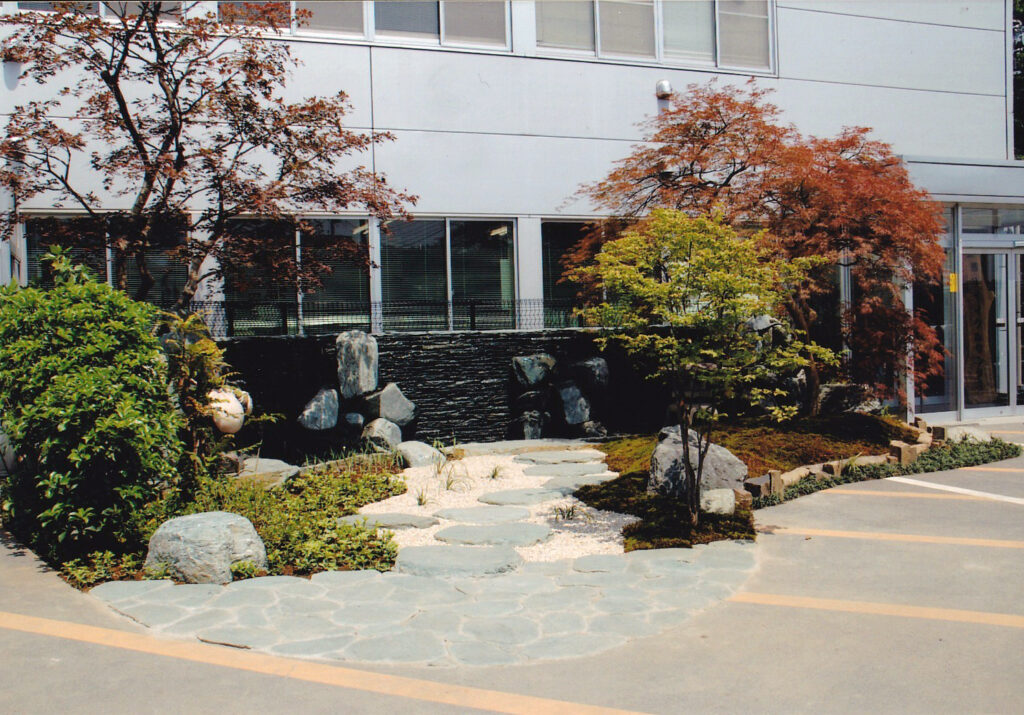 今回の施工紹介は【三芳町】での【企業本社社屋前の造園工事】です。