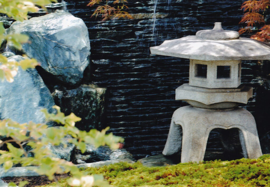 躯体のコンクリートから循環ポンプ、石工事、植栽、苔張りの仕上げまで自社一貫施工で手掛けさせていただきました。