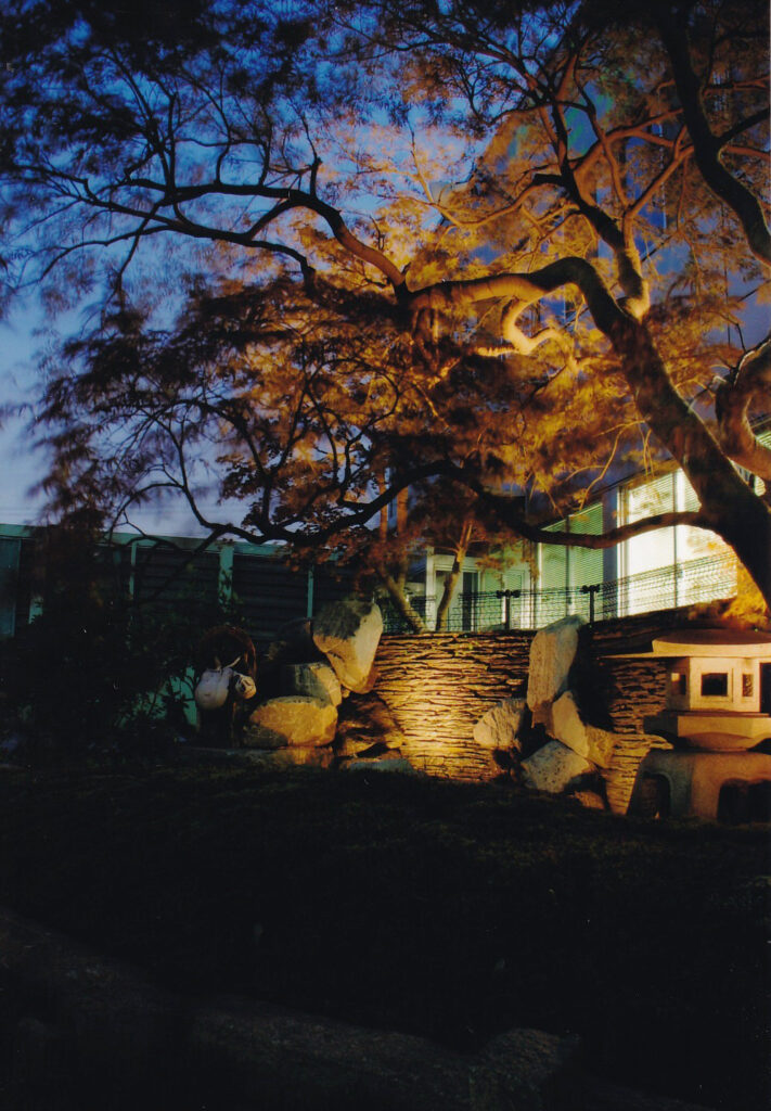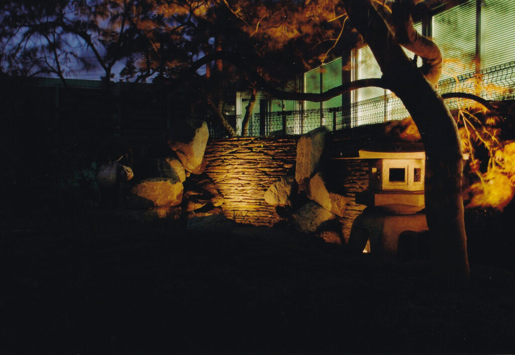 昼夜を問わず鑑賞できる前庭でお客様を迎えられるよう、各所の見え方にこだわって作庭しました。