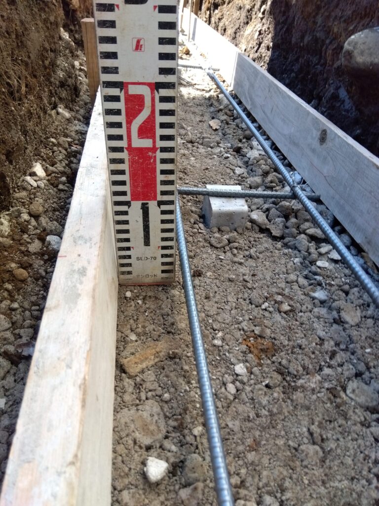 当社の施工マニュアルに則り、適切な鉄筋配筋とスペーサーブロックでのコンクリート被りの測定を行いました。