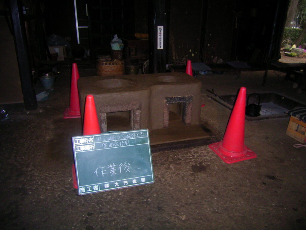 三芳町には何軒かの江戸時代に建築された歴史的建造物があります。そのなかの一棟でへっつい(かまど)が老朽化して使用に難を生じたため、三芳町より受注し、へっついの再生修繕を行いました。