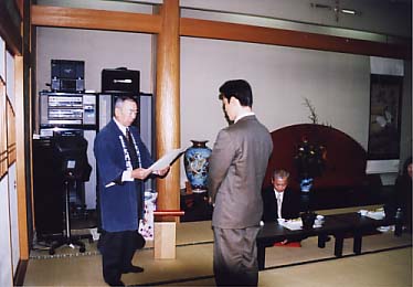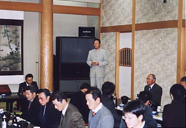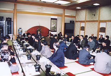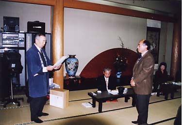 その後、安全会議及び新年会が行われました。2003年度安全衛生に貢献していただいた協力会社2社の表彰も行われました。今回表彰されたのは、日々当社の作業だけでなく様々な活動にも協力していただいている茂木造園さんと、主に外構でお客様から安定した好印象を戴いている佐藤興業さんです。