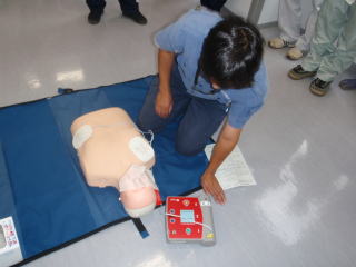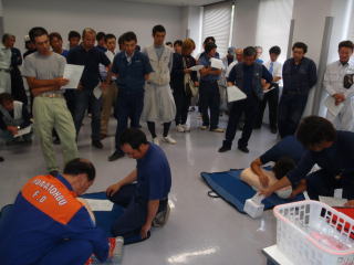 特別講演として、入間東部消防組合の方にご協力を戴き、緊急時の救急救命(AED・人工呼吸など)方法の実演を行いました。