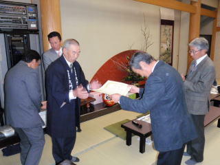 前年度の安全に対する取り組みに貢献した 協力会社の青樹園様と 当社の五十嵐係長が表彰を受けました。