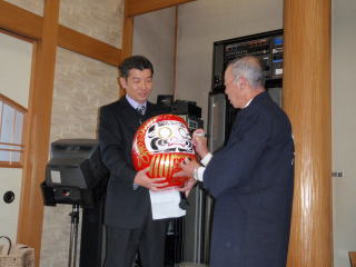 表彰後は一層の懇親を深め、ダルマに一年の安全と「腹八分 常と思う」の今年度目標を込め、