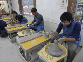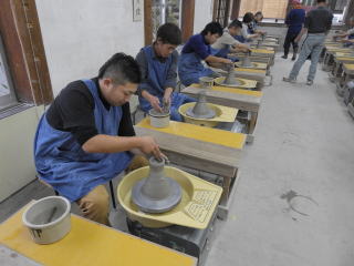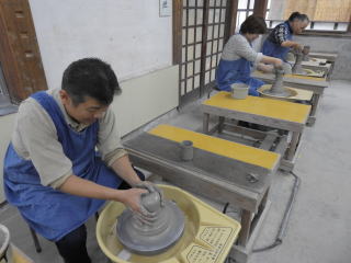 全員がろくろを回すのが初めてで、思うように形がつくれません。